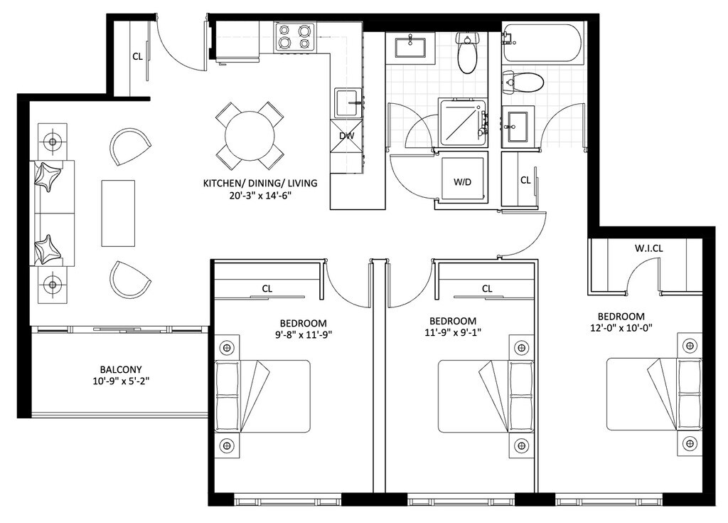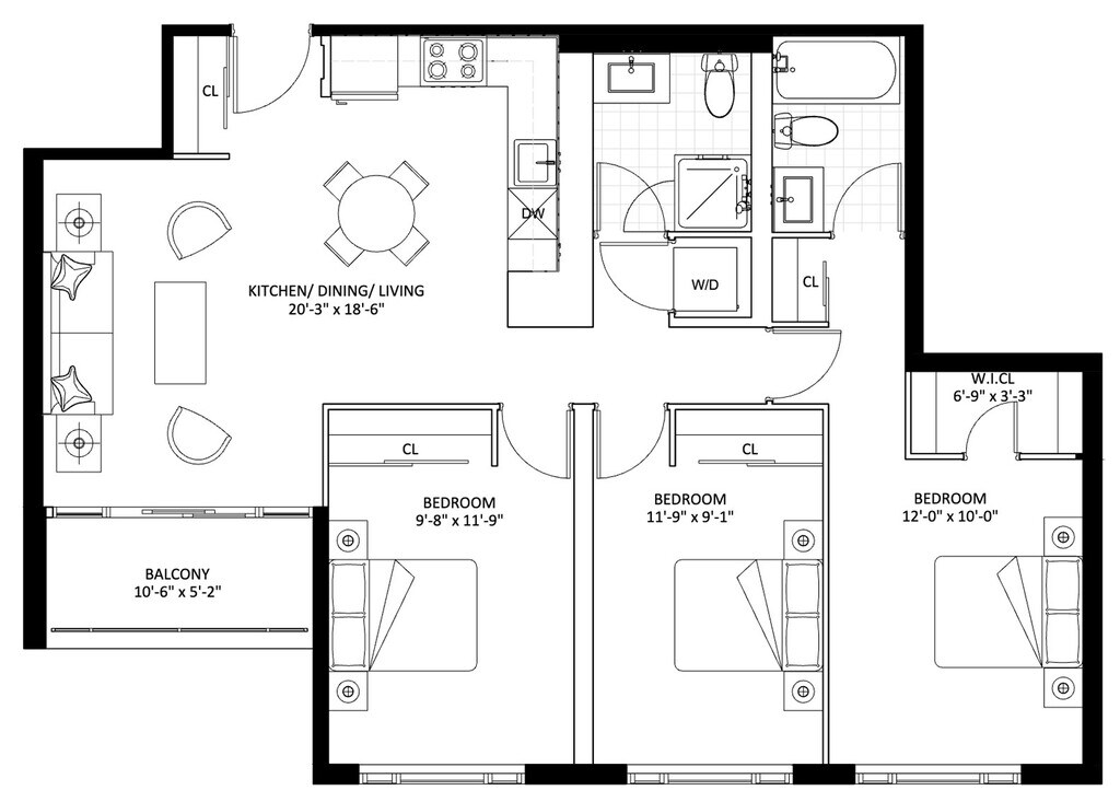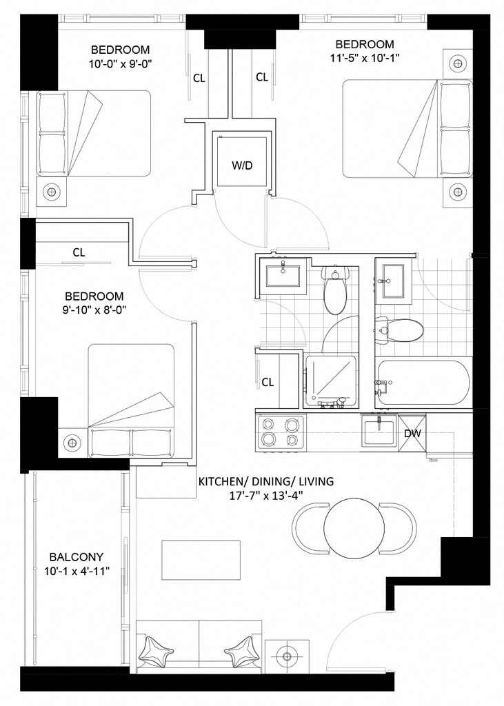 Apartment Model: Diamond 3 - Plan L$2,2491 Bedroom, 1 Bath, 496 sq ftAvailable January 1, 2026![]()