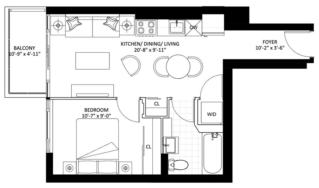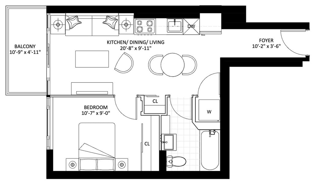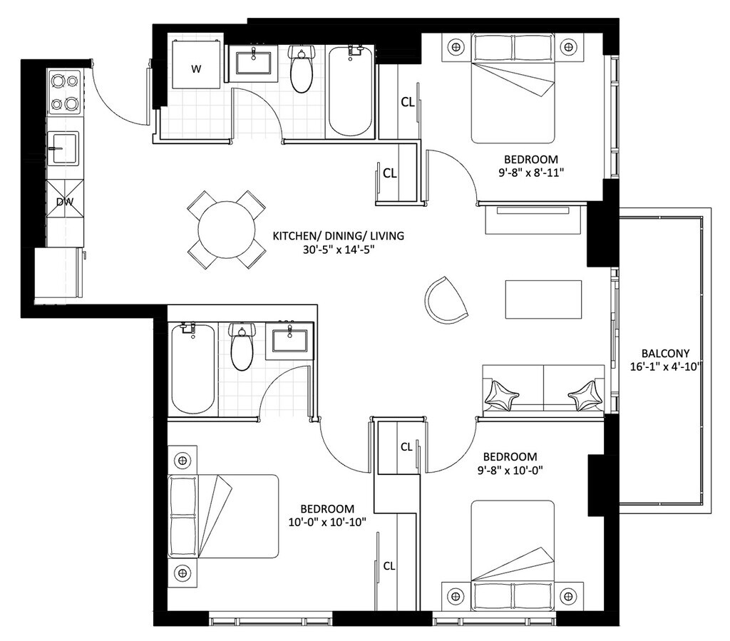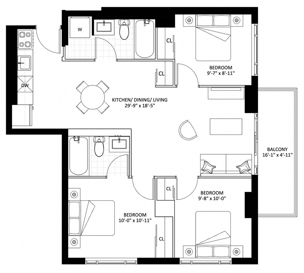 Diamond 3 - Plan L - Floorplan 1 Apartment Unit: Diamond 3 - Plan L SuiteApartment Model: Diamond 3 - Plan L$2,2491 Bedroom, 1 Bath, 496 sq ftAvailable January 1, 2026Diamond 2 - Plan F