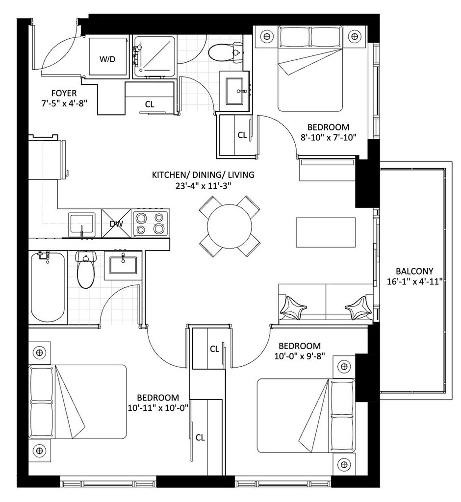 Unit Diamond 3 - Plan L Suite Rent and Fees