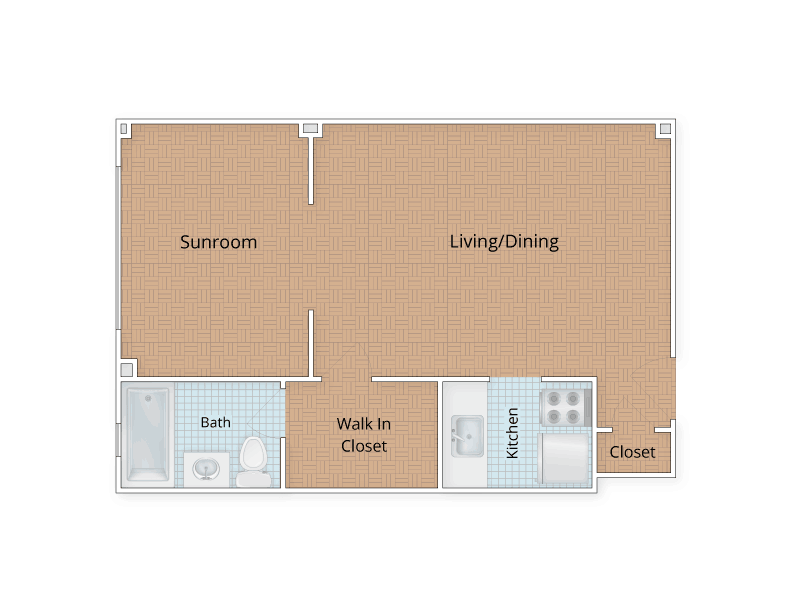 Studio, 1 Bath, 409-475 sq ftAvailable NowModel Gallery