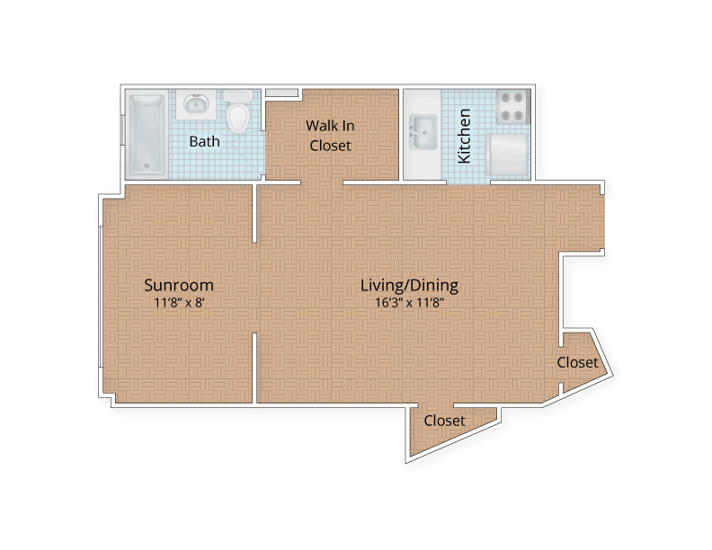 Studio with Den - Floorplan 1 Apartment Unit: 801Apartment Model: Studio with Den$2,136Studio, 1 Bath, 552 sq ftAvailable Now![]()