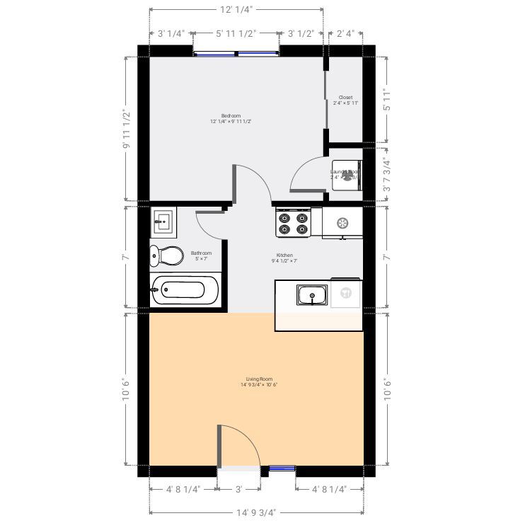 1 Bed, 1 Bath, 490 sq ftModel Gallery