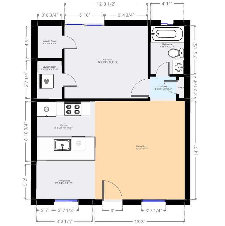 2 Beds, 1 Bath, 775-777 sq ftModel Gallery