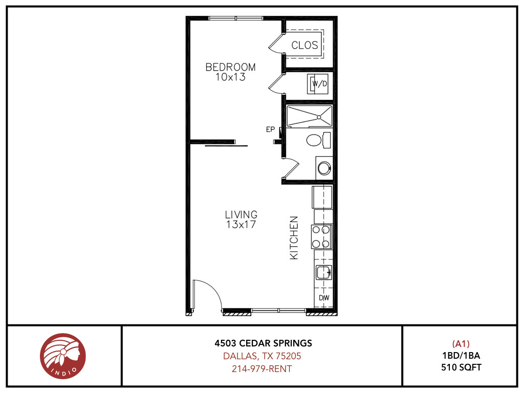 Apartment Model: A1-1From $1,0501 Bedroom, 1 Bath, 510 sq ftAvailable Now![]()