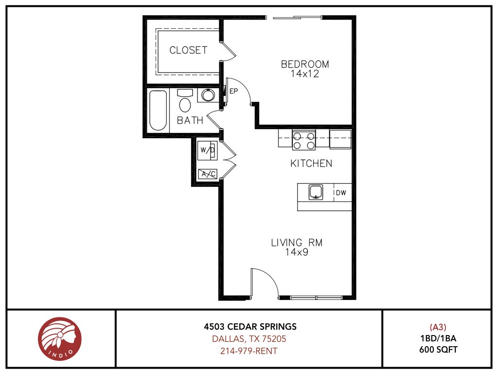 Apartment Model: A3From $1,1001 Bedroom, 1 Bath, 600 sq ftAvailable Now![]()