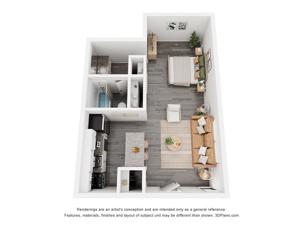 Studio, 1 Bath, 500 sq ftAvailable NowModel Gallery