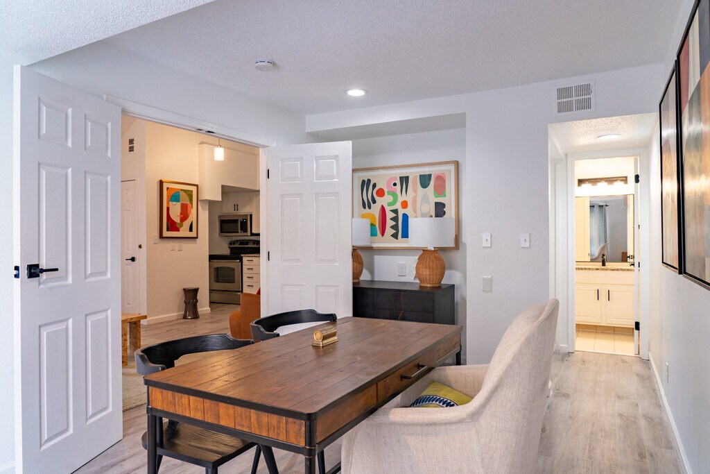 Welcome to The District North Hills, a new take on North Hills. Our renovated apartment community in Raleigh, NC offers studio apartments and loft-style two-bedroom homes that are more than just a den; they’re a sanctuary of style and comfort. At The District North Hills, we're committed to ensuring your living experience is exceptional. Our renovated apartments are crafted with the utmost attention to detail, providing you with a space that’s sleek, cozy, and a den unlike any other. Join us at The District North Hills, where we’ve mastered the art of modern living with a dash of whimsical flair. It’s time to embrace a lifestyle full of comfort and convenience. Call today to schedule your in-person or virtual tour .