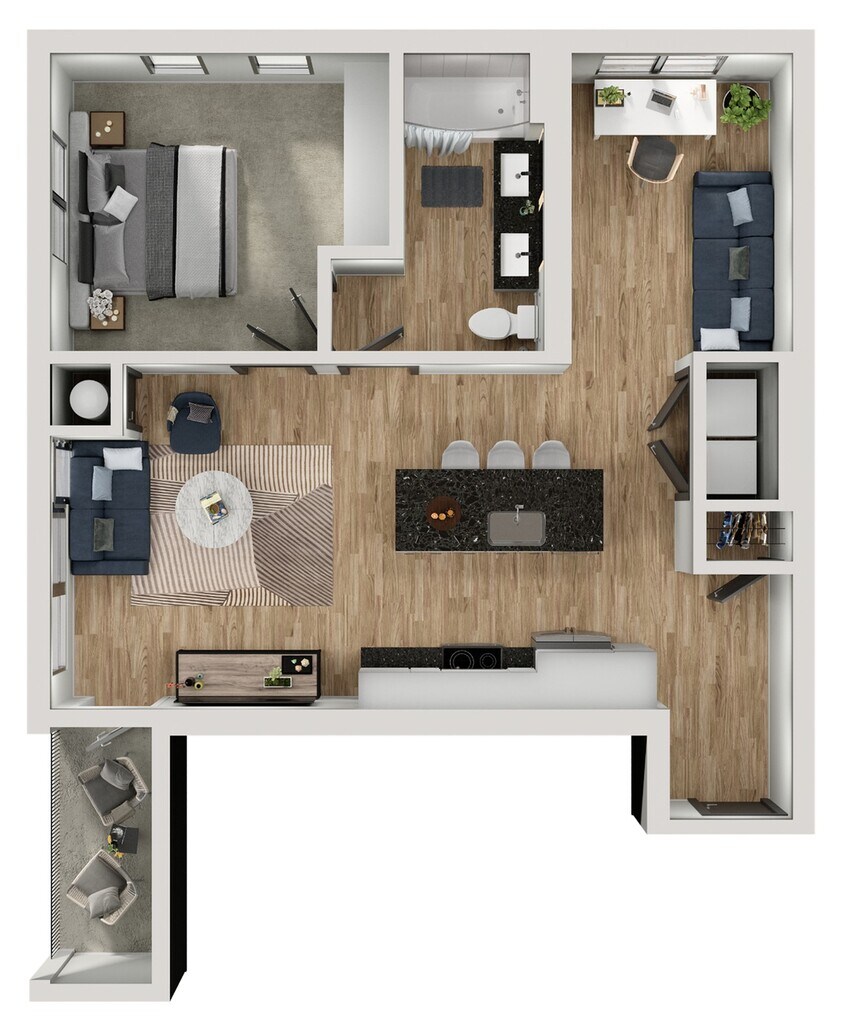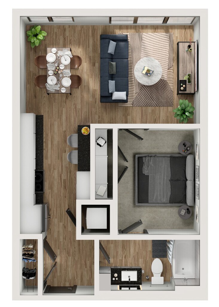Apartment Model: S1A$1,704Studio, 1 Bath, 478 sq ftAvailable December 2, 2025Floor plans are artist's rendering. All dimensions are approximate. Actual product and specifications may vary in dimension or detail. Not all features are available in every rental home. Prices and availability are subject to change. Base rent is based on monthly frequency. Additional fees may apply, such as but not limited to package delivery, trash, water, amenities, etc. Deposits vary. Please see a representative for details.