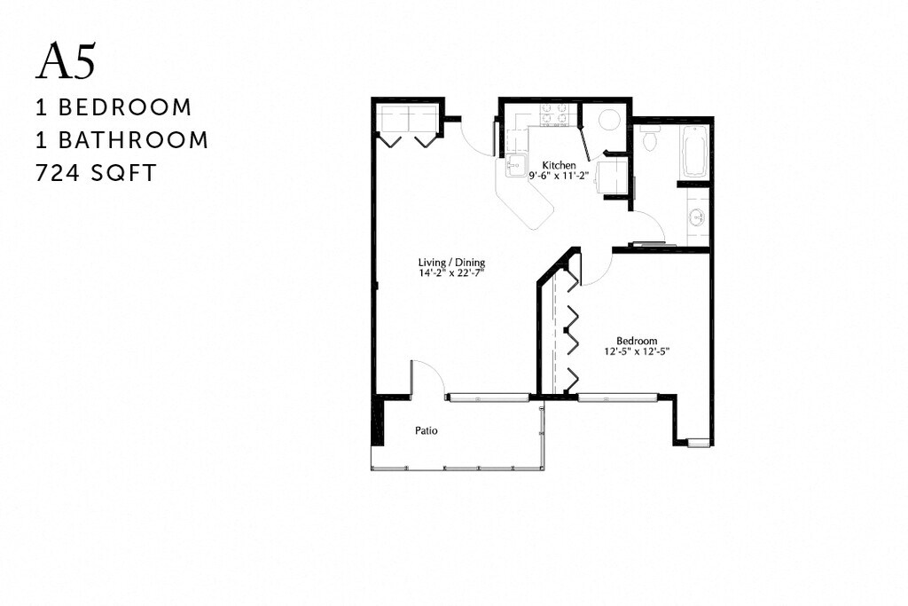U1 Urban One Bedroom - Floorplan 1 U5 Urban One Bedroom