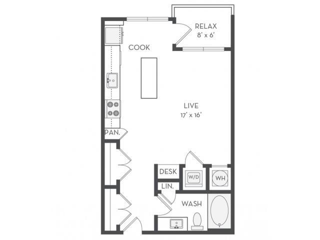 Studio, 1 Bath, 550 sq ftAvailable NowModel Gallery