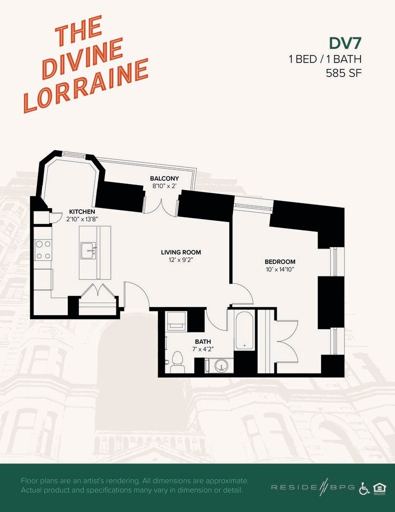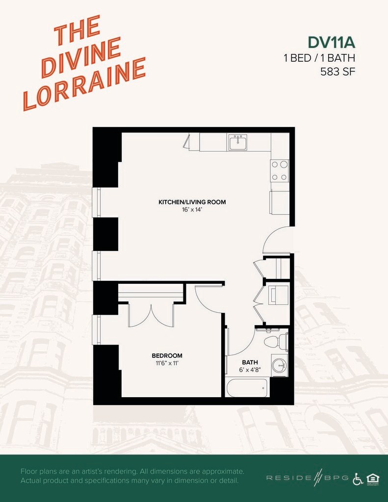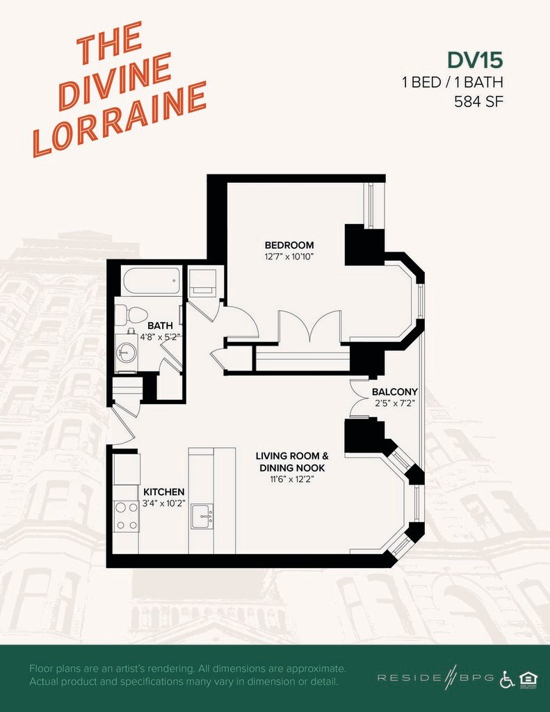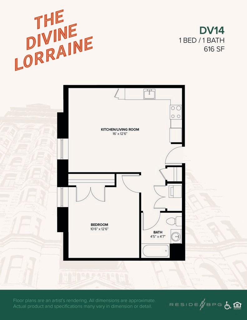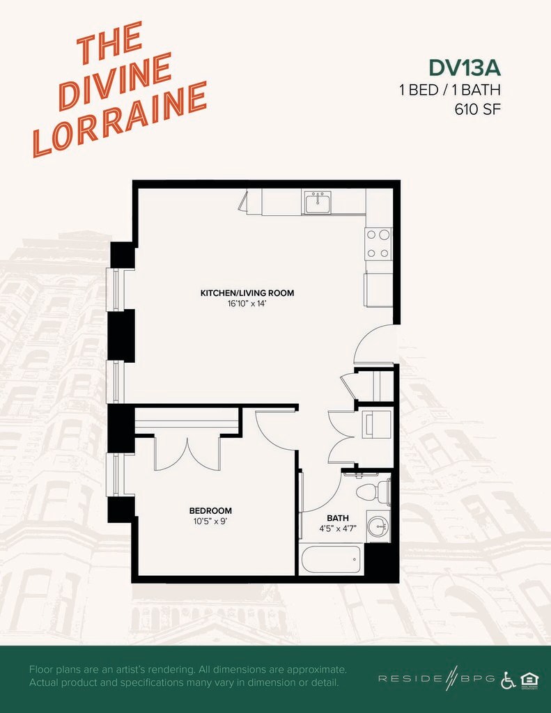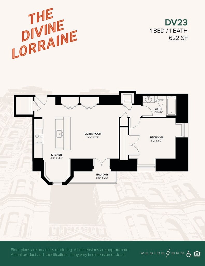 The Divine Lorraine offers 1 to 2 Bedroom apartments starting from $1,730 and having 552–1,463 sq ft. Here is the current pricing and availability: