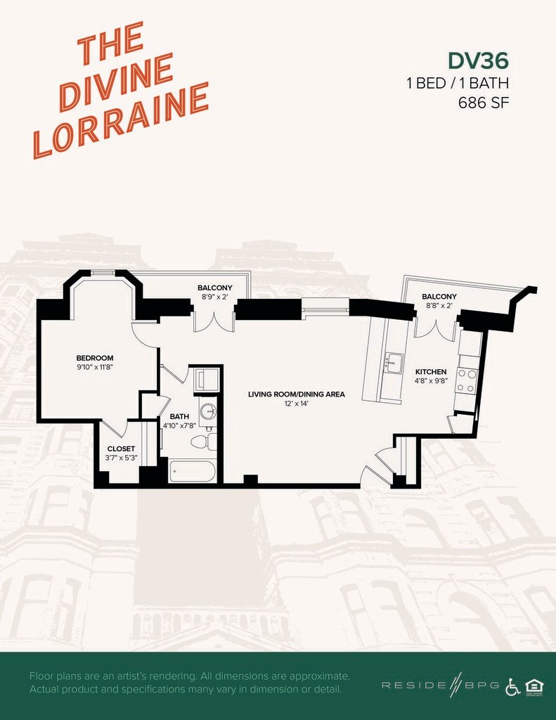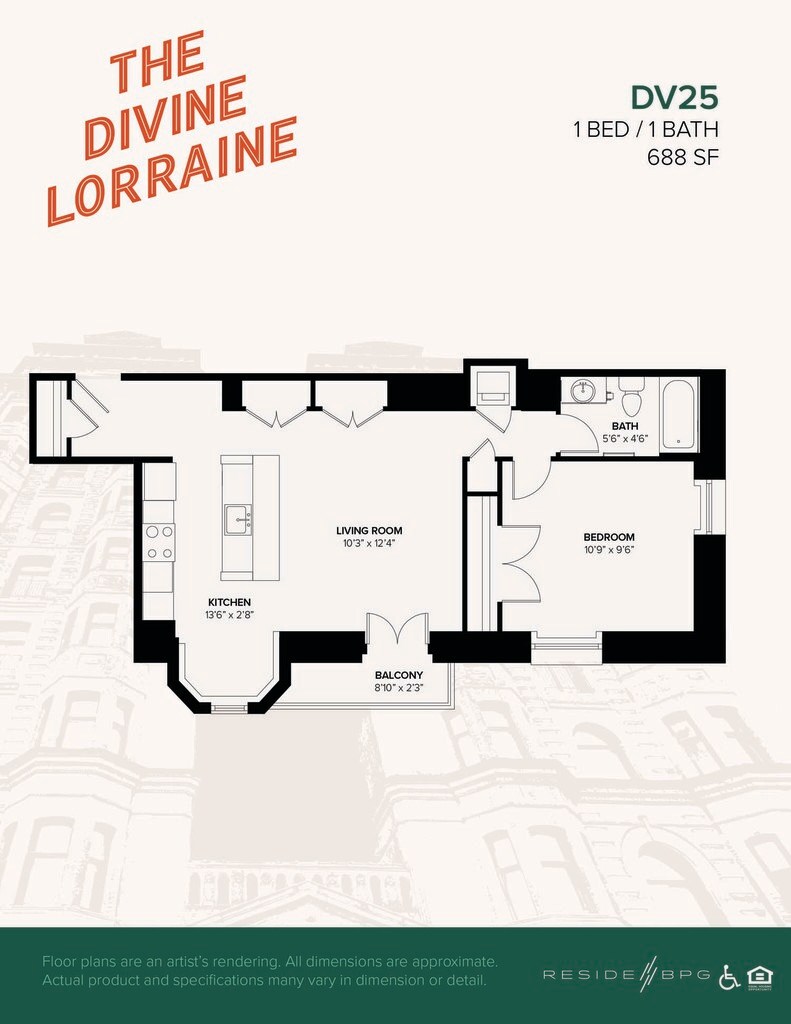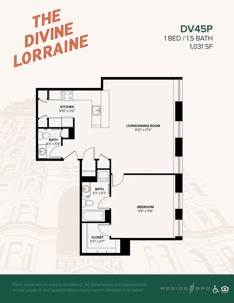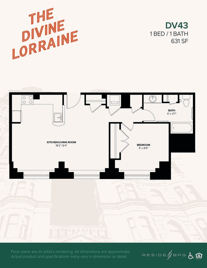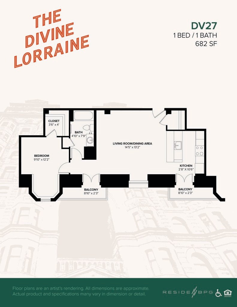 The Divine Lorraine offers 1 to 2 Bedroom apartments starting from $1,730 and having 552–1,463 sq ft. Here is the current pricing and availability: