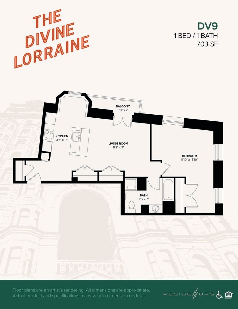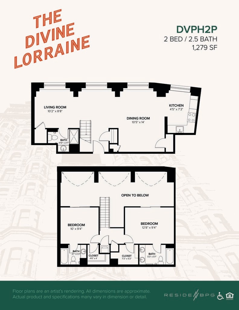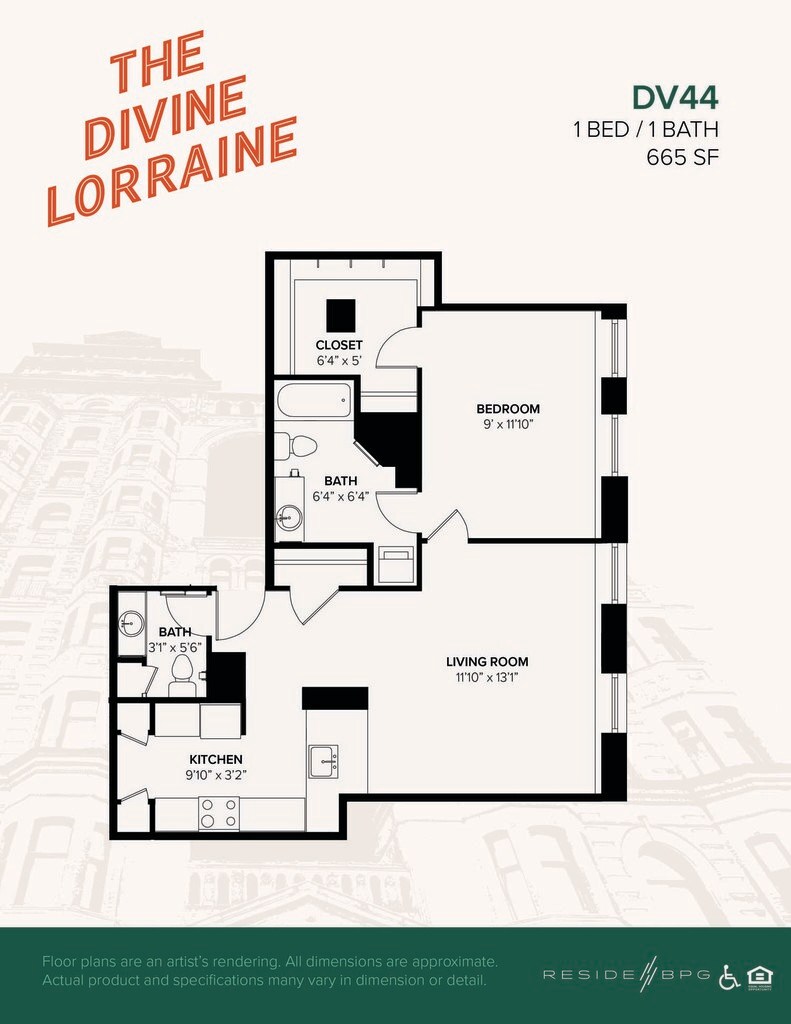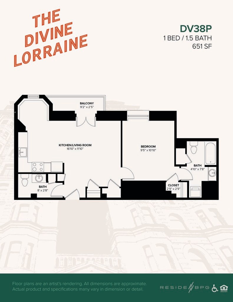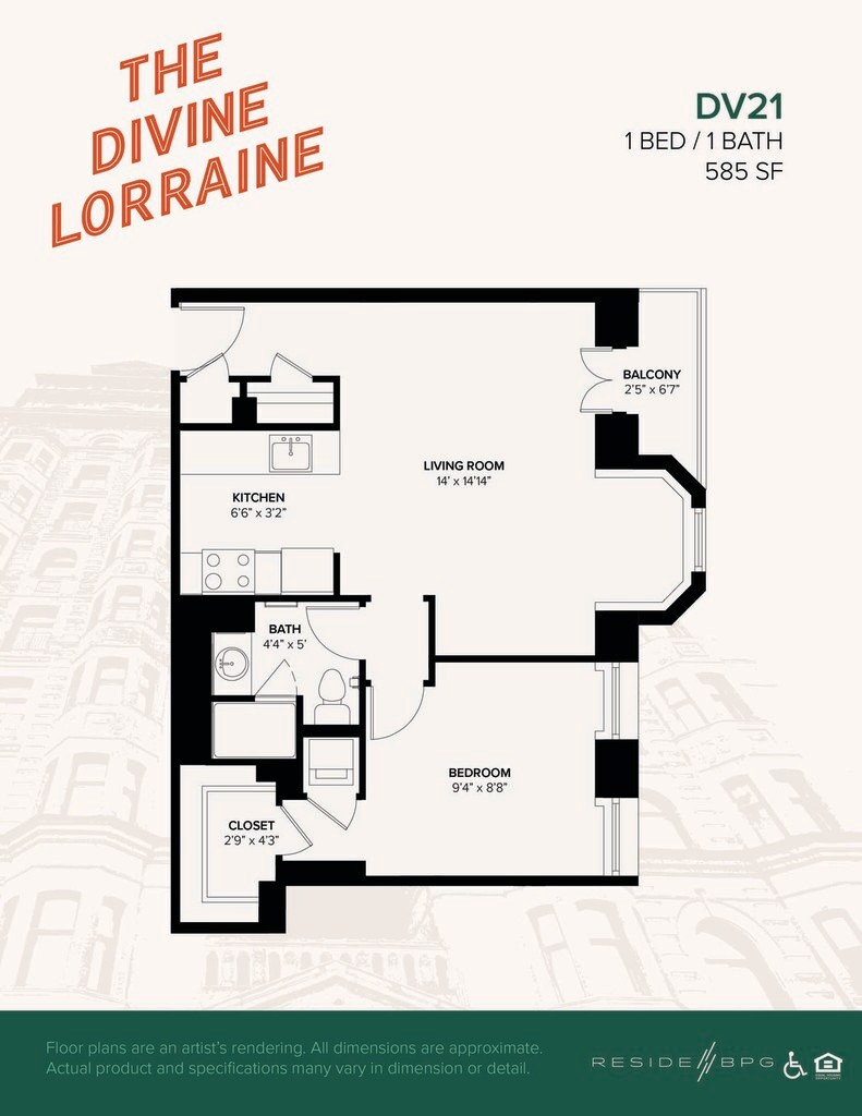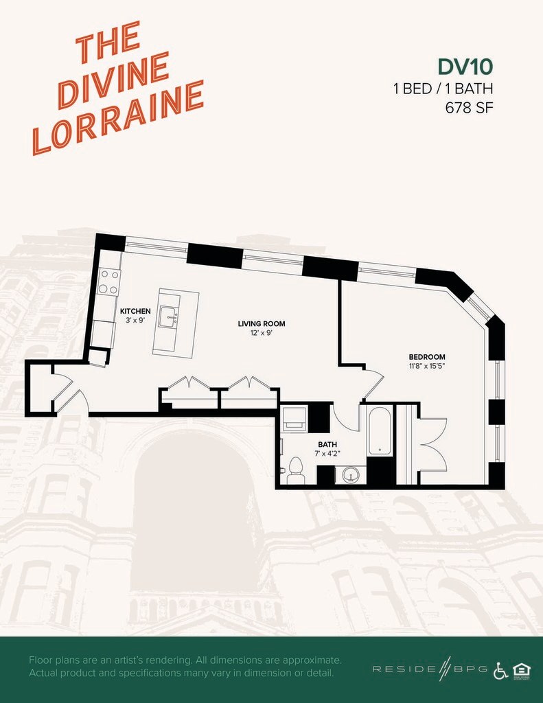 The Divine Lorraine offers 1 to 2 Bedroom apartments starting from $1,730 and having 552–1,463 sq ft. Here is the current pricing and availability: