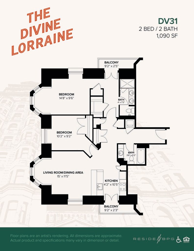 1 Bedroom to 2 Bedroom Apartments at The Divine Lorraine currently range from $1,730 to $4,755