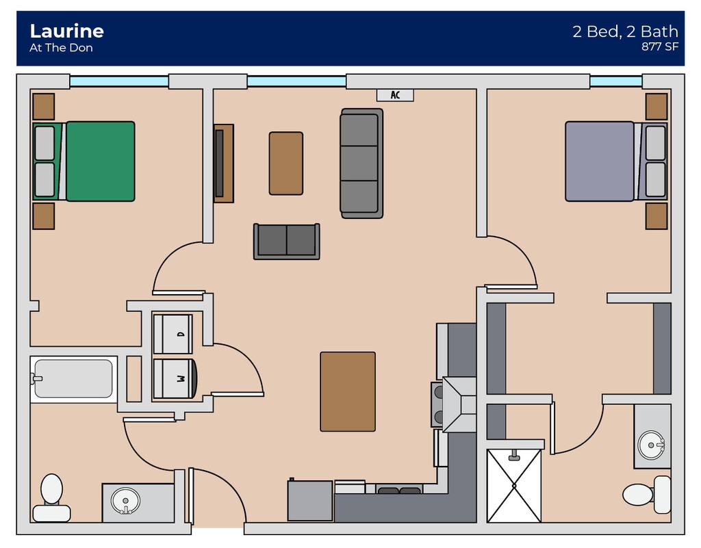 Apartment Model: Laurine$1,2302 Bedroom, 2 Bath, 877 sq ftAvailable Now![]()