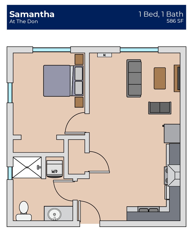 Apartment Model: Samantha$9501 Bedroom, 1 Bath, 586 sq ftAvailable NowFloorplansPhotos![]()