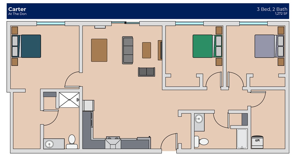 Apartment Model: CarterFrom $1,6503 Bedroom, 2 Bath, 1272 sq ftAvailable NowFloorplansPhotos![]()