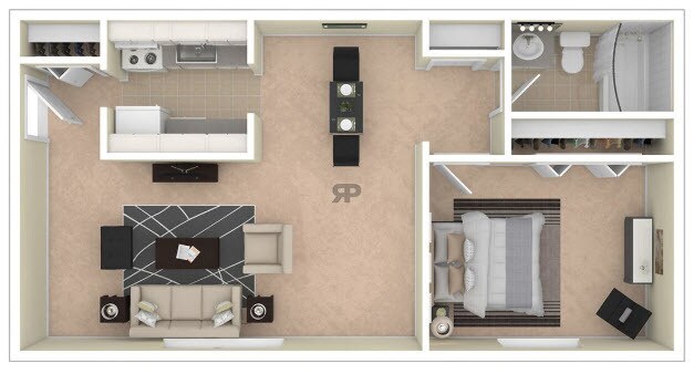 1 Bed, 1 Bath, 770 sq ftModel Gallery
