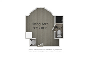 Studio, 1 Bath, 125 sq ftAvailability Details