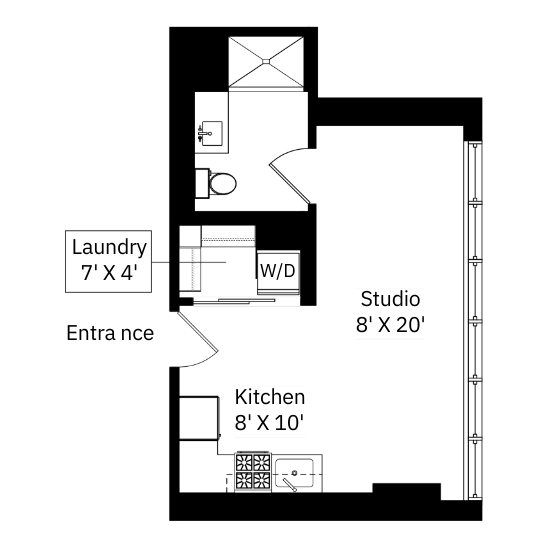 A8 - Floorplan 1 Apartment Unit: 406Apartment Model: A8$1,645Studio, 1 Bath, 413 sq ftAvailable Now![]()
