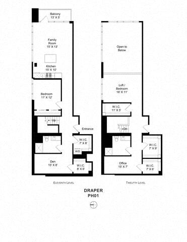 The Draper offers Studio to 2 Bedroom apartments starting from $1,565 and having 356–1,470 sq ft. Here is the current pricing and availability: