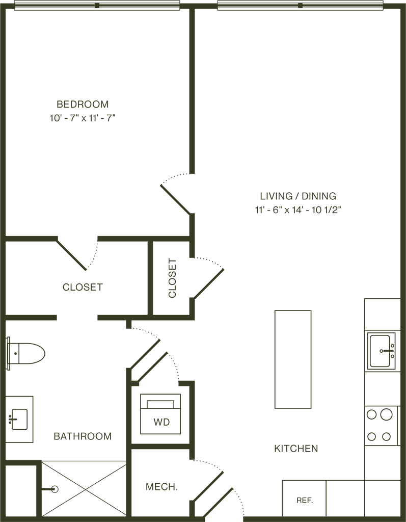 Apartment Model: Junior One Bedroom AFrom $1,5251 Bedroom, 1 Bath, 484 sq ftAvailable NowFloor plans are artist's rendering. All dimensions are approximate. Actual product and specifications may vary in dimension or detail. Not all features are available in every rental home. Prices and availability are subject to change. Base rent is based on monthly frequency. Additional fees may apply, such as but not limited to package delivery, trash, water, amenities, etc. Deposits vary. Please see a representative for details.