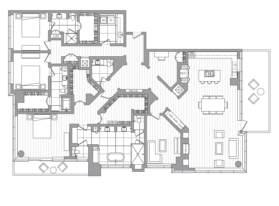 - Special Features in Select Homes: Private Terraces, Stainless Steel Undercounter Wine Chillers, Buil