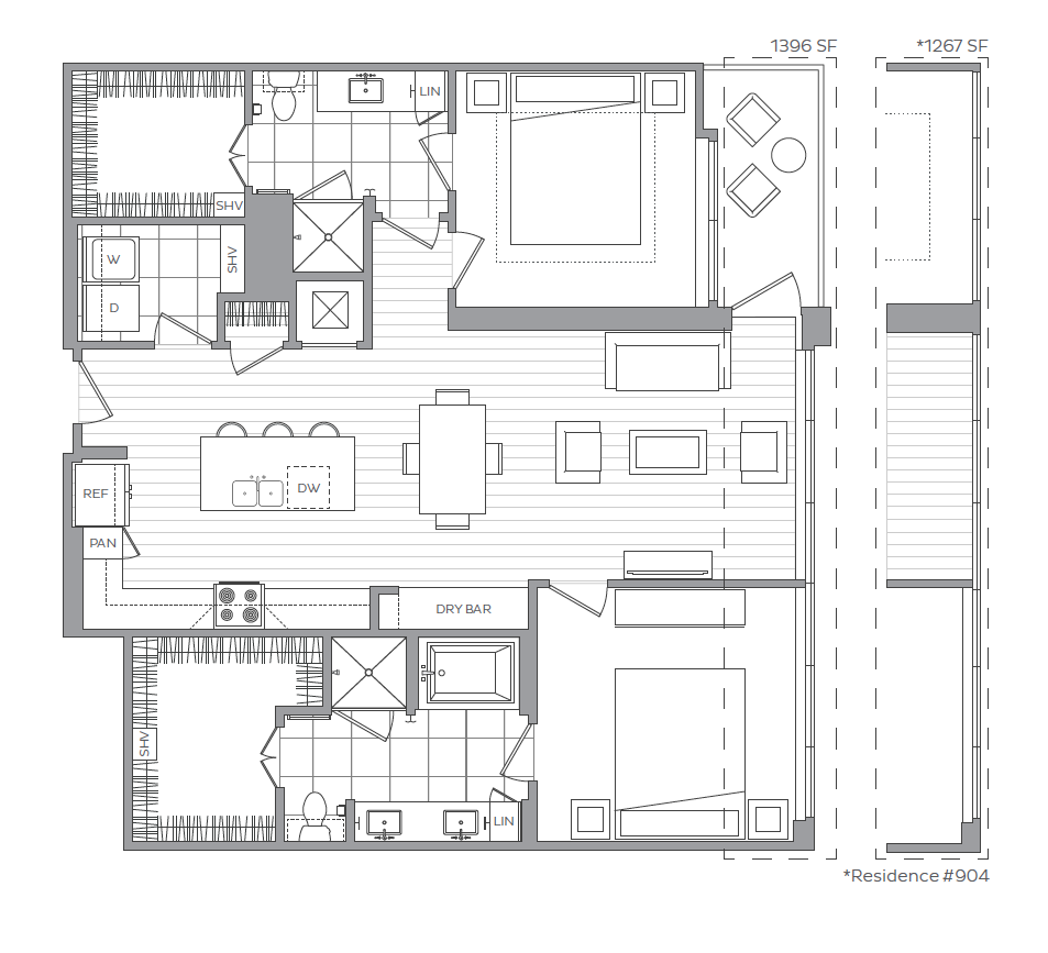 D - Floorplan 6 Apartment Unit: Main-913Apartment Model: D1 Bedroom, 1 Bath, 904 sq ftAvailable January 15, 2026Floorplan A