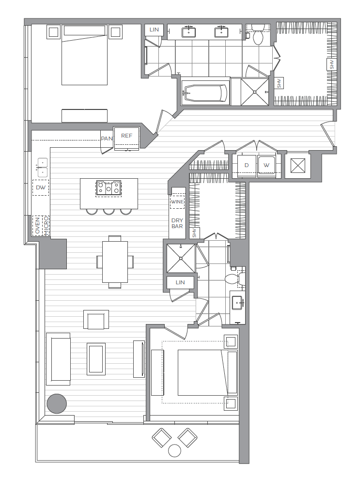 H - Floorplan 2 Apartment Unit: Main-2402Apartment Model: H1 Bedroom, 1 Bath, 974 sq ftAvailable December 30, 2025Floorplan D
