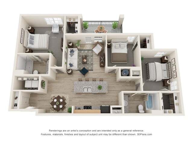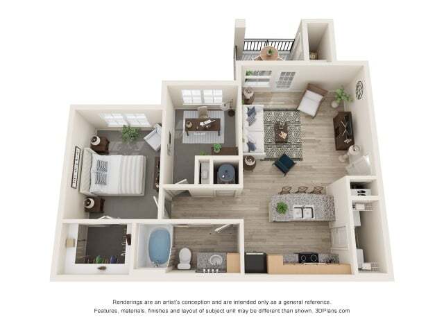 Apartment Model: A3: Opal$1,6951 Bedroom, 1 Bath, 980 sq ftAvailable NowFloor plans are artist's rendering. All dimensions are approximate. Actual product and specifications may vary in dimension or detail. Not all features are available in every rental home. Prices and availability are subject to change. Base rent is based on monthly frequency. Additional fees may apply, such as but not limited to package delivery, trash, water, amenities, etc. Deposits vary. Please see a representative for details.
