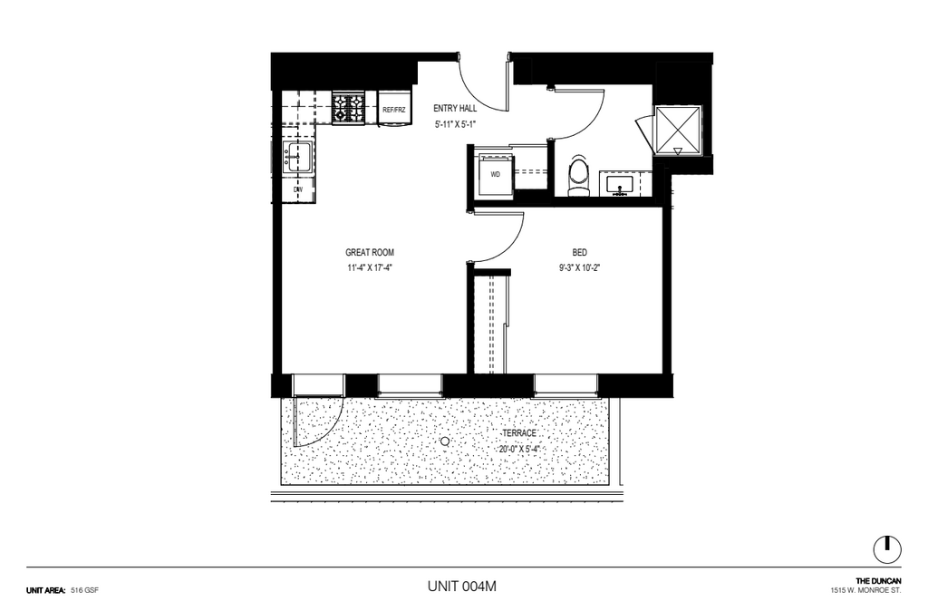 The Duncan is located at 1515 W Monroe St near the West Loop area of Chicago, IL