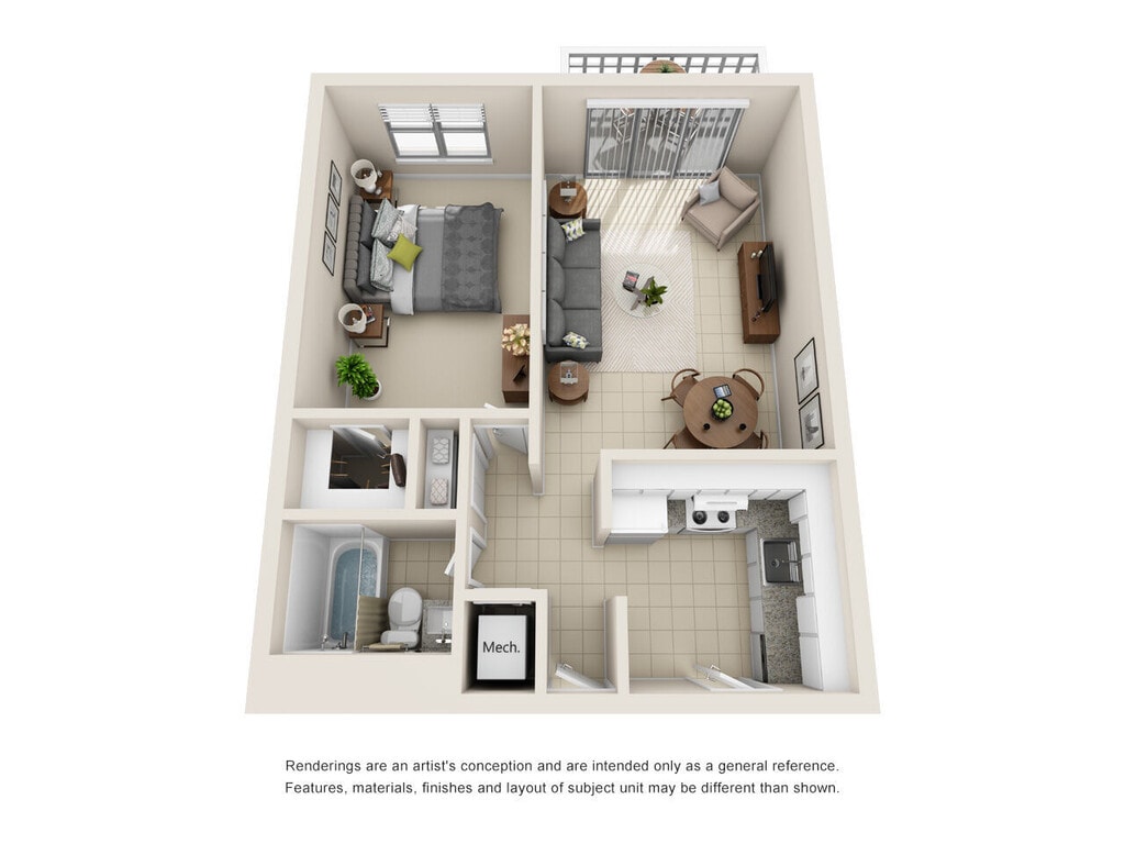 1 Bed, 1 Bath, 669 sq ftAvailable NowModel Gallery