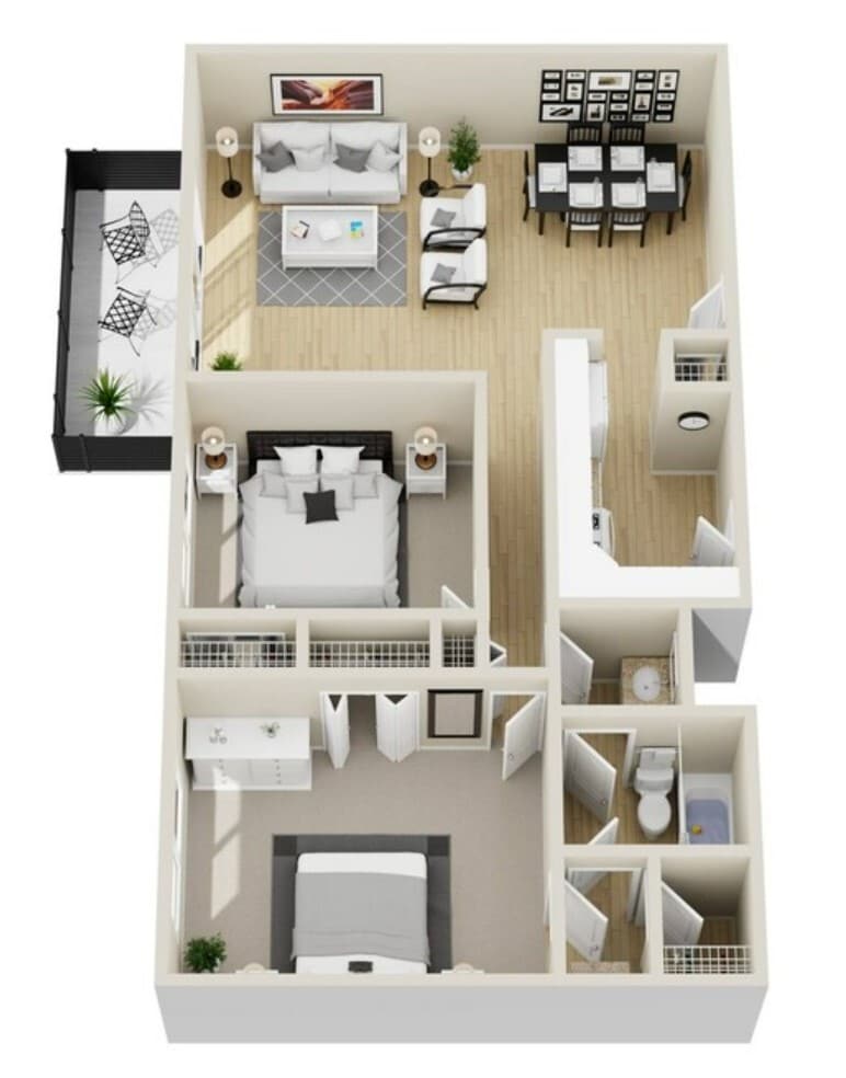 2 Beds, 1 Bath, 938 sq ftAvailable NowModel Gallery