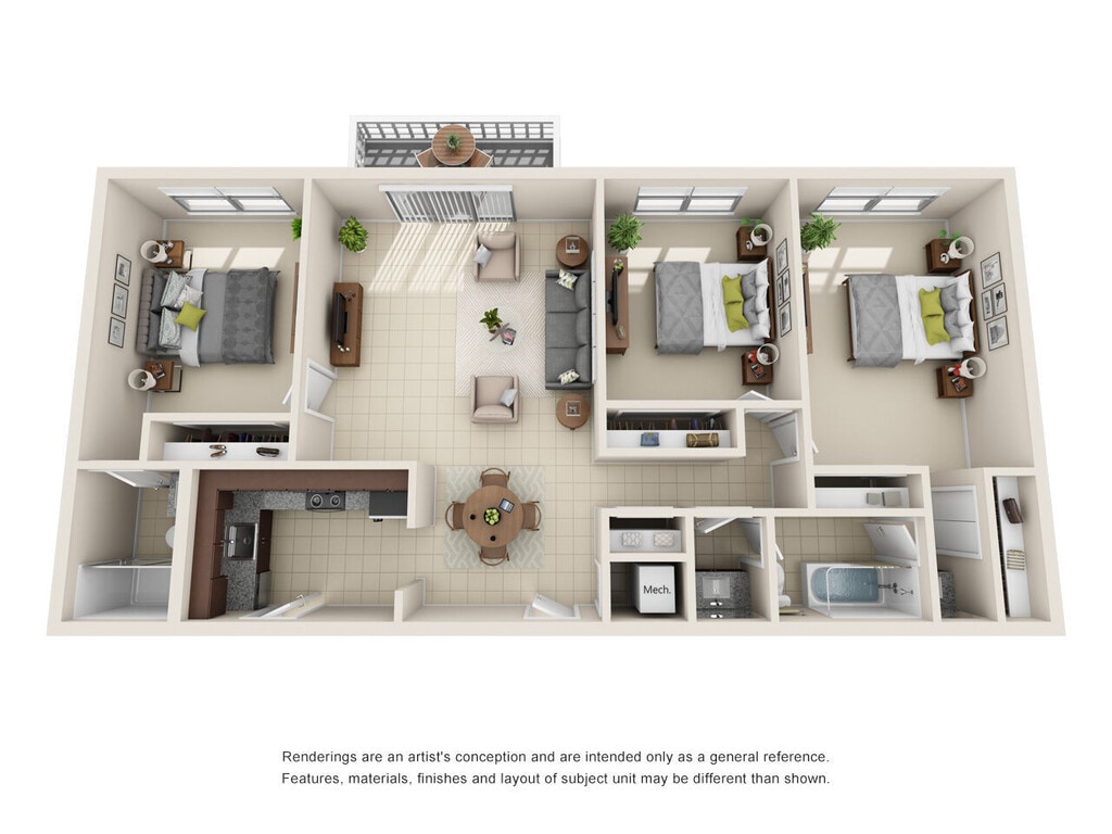 3 Beds, 2 Baths, 1168 sq ftAvailable NowModel Gallery