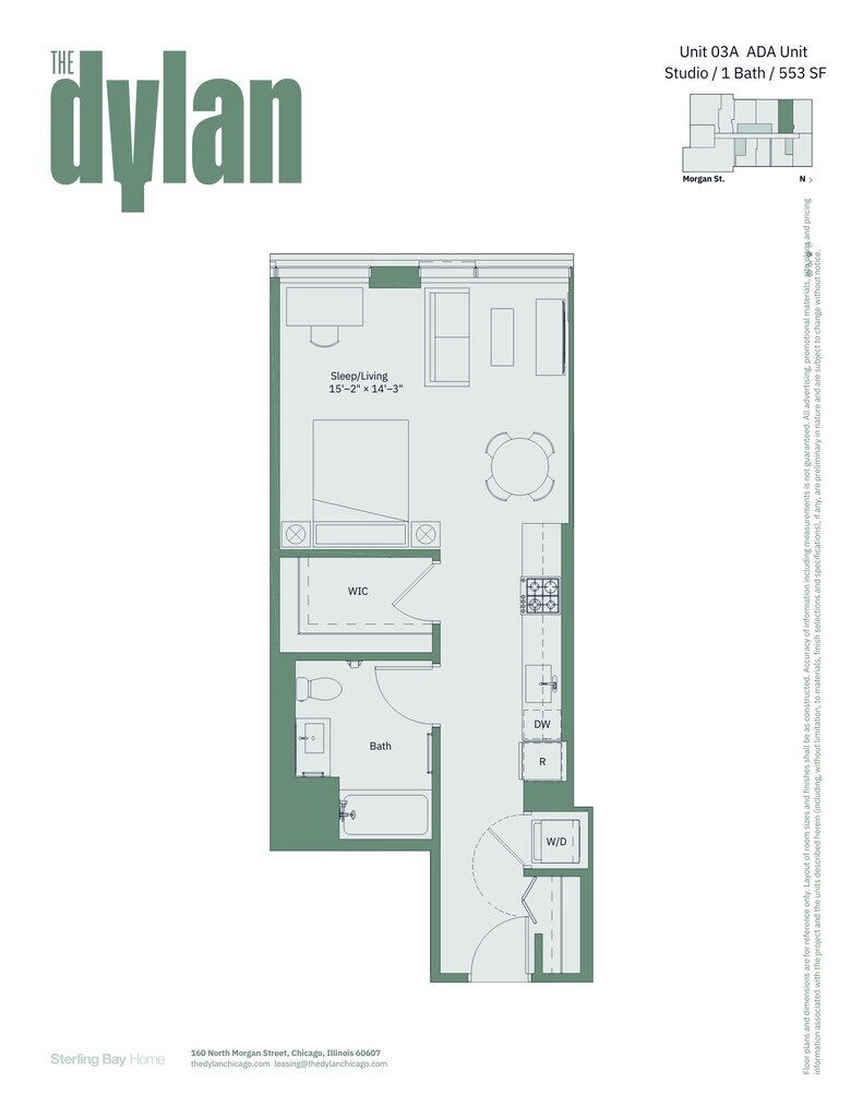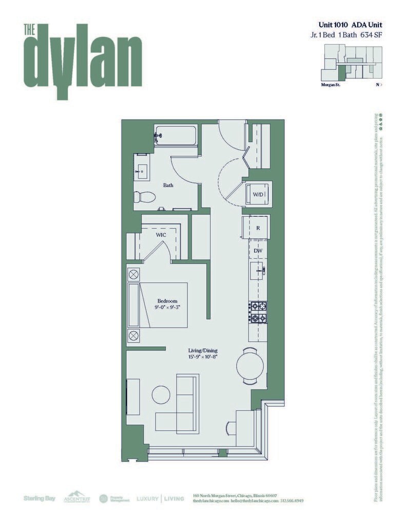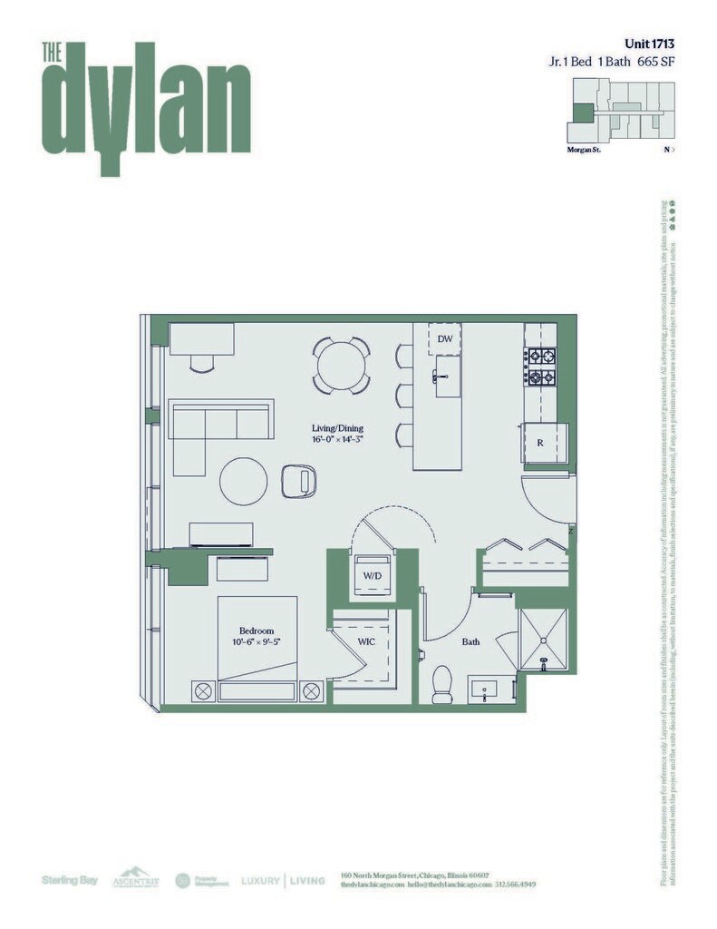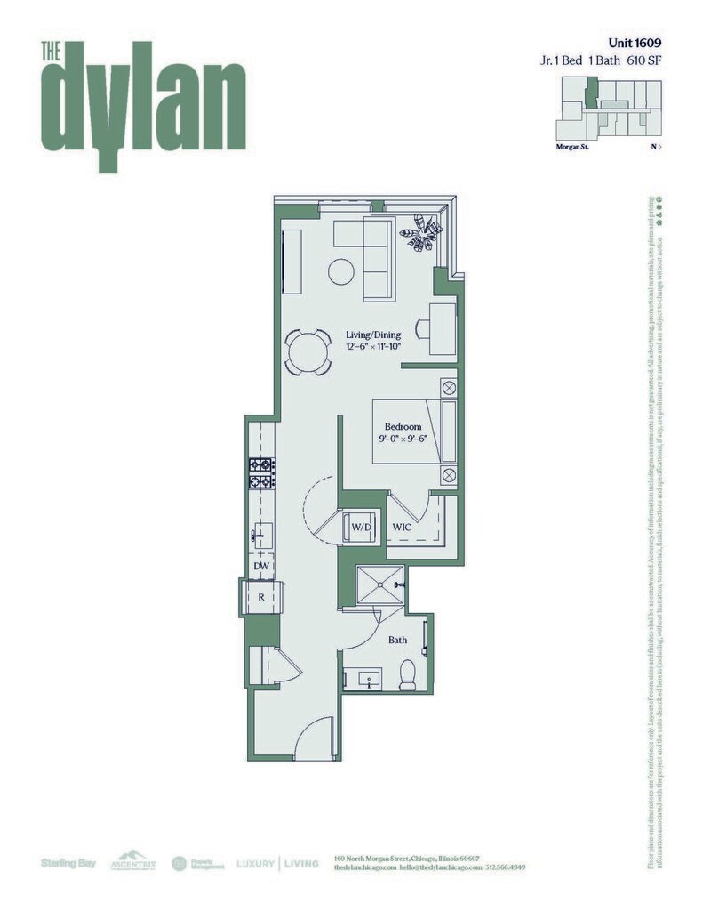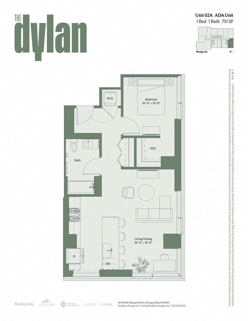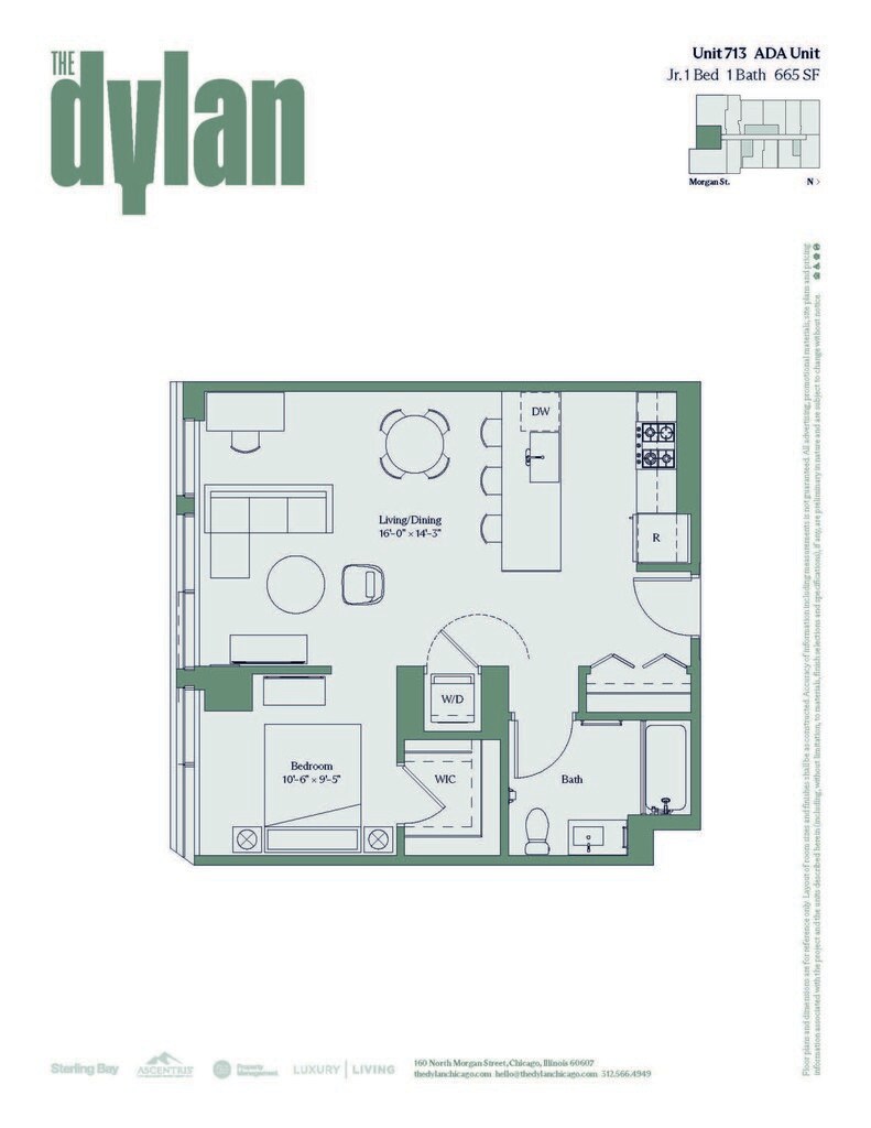 The Dylan offers vibrant apartments in the heart of the hustle, with modern details and enviable amenities. Located at 160 N Morgan Street, these brand new Fulton Market apartments are situated near endless Michelin stars, designer icons, and lively cocktail lounges. Coupled with plenty of green spaces, pedestrian paths, bike lanes, train stops, expressway accessits all here. Apartments at The Dylan offer unparalleled sophisticated living with features including floor-to-ceiling windows, walk-in closets, in-unit laundry, waterfall-edge white quartz countertops, and exposed architectural concrete ceilings, just to name a few. The Dylans amenity suite is everything you could ask for and then some. From poolside cabanas for lazy days to co-working spaces for heads-down time and fitness studios to burn off some energy theres space for everything at The Dylan. *Lease terms, pricing, and availability are subject to change at any time. Ask our leasing team for more details.