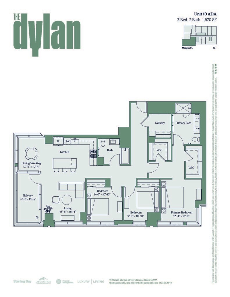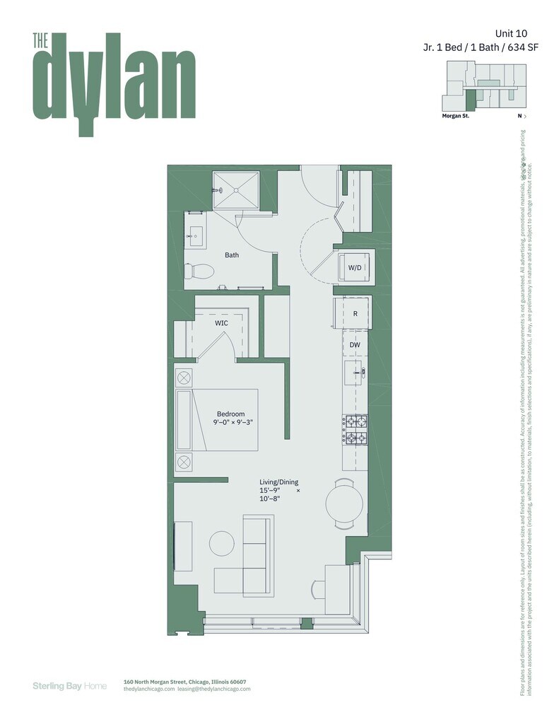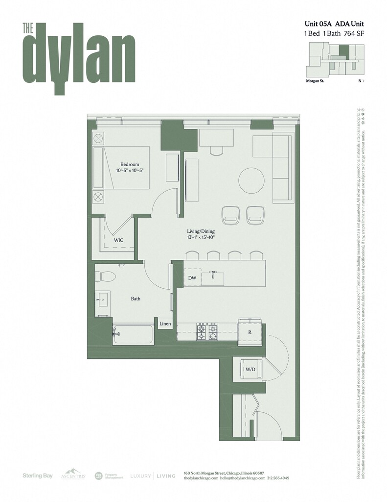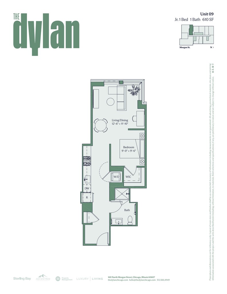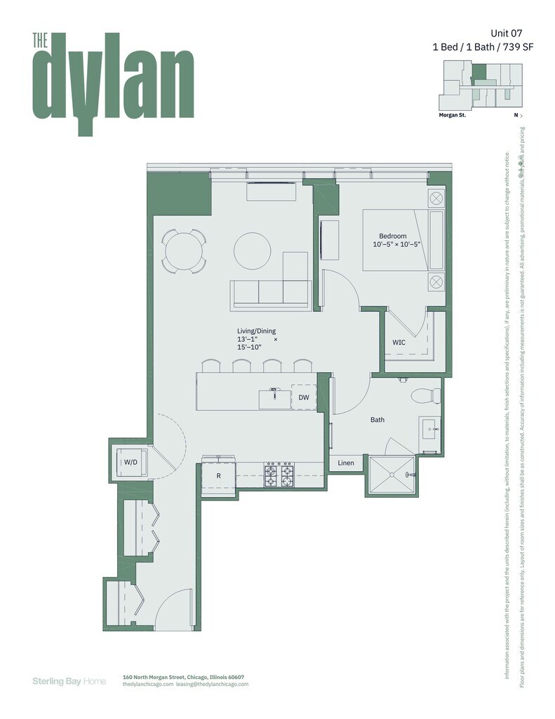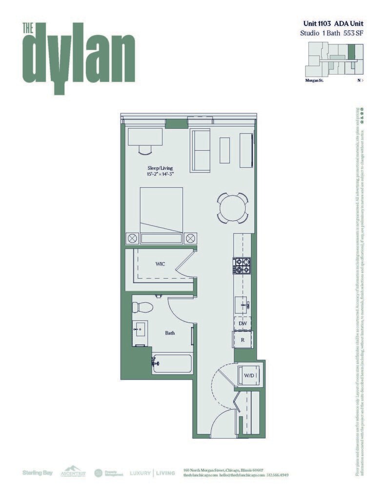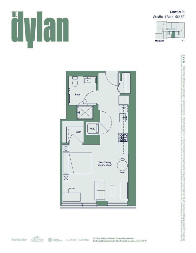 The Dylan offers vibrant apartments in the heart of the hustle, with modern details and enviable amenities. Located at 160 N Morgan Street, these brand new Fulton Market apartments are situated near endless Michelin stars, designer icons, and lively cocktail lounges. Coupled with plenty of green spaces, pedestrian paths, bike lanes, train stops, expressway accessits all here. Apartments at The Dylan offer unparalleled sophisticated living with features including floor-to-ceiling windows, walk-in closets, in-unit laundry, waterfall-edge white quartz countertops, and exposed architectural concrete ceilings, just to name a few. The Dylans amenity suite is everything you could ask for and then some. From poolside cabanas for lazy days to co-working spaces for heads-down time and fitness studios to burn off some energy theres space for everything at The Dylan. *Lease terms, pricing, and availability are subject to change at any time. Ask our leasing team for more details.
