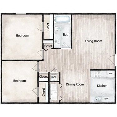 2 Beds, 1 Bath, 790-825 sq ftAvailable Nov 7Model Gallery