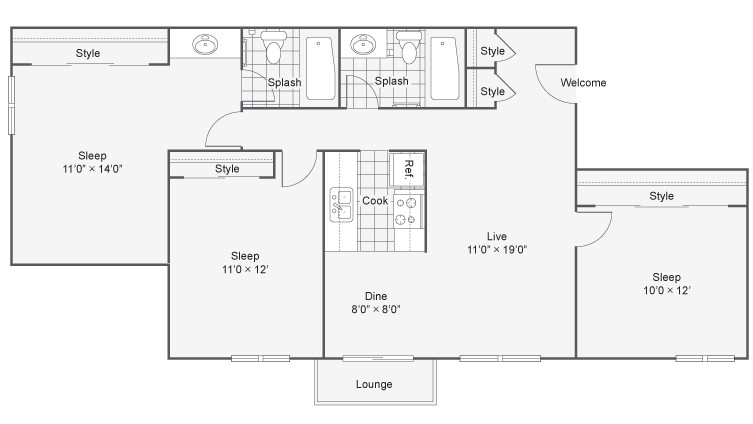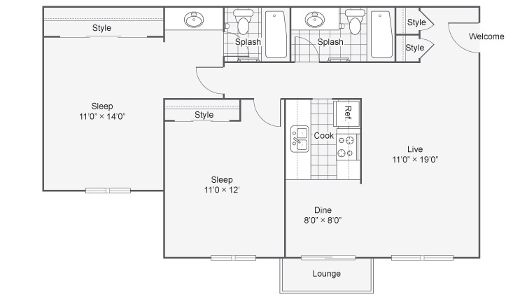 2 Beds, 2 Baths, 1013 sq ftAvailable NowModel Gallery