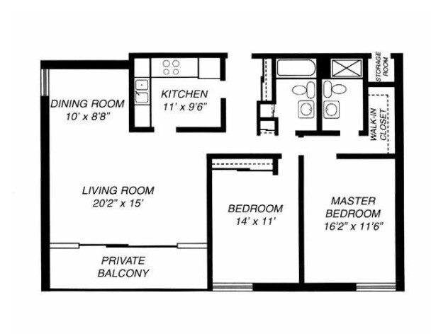 1x1 deluxe - Floorplan 1 2 Bedrooms