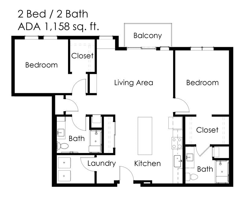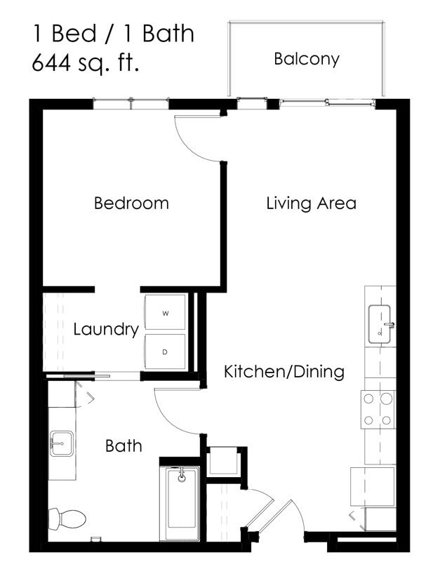 1 Bed / 1 Bath 644 sq ft 1AA ADA - Floorplan 1 1 Bed / 1 Bath 648 sq ft 1A