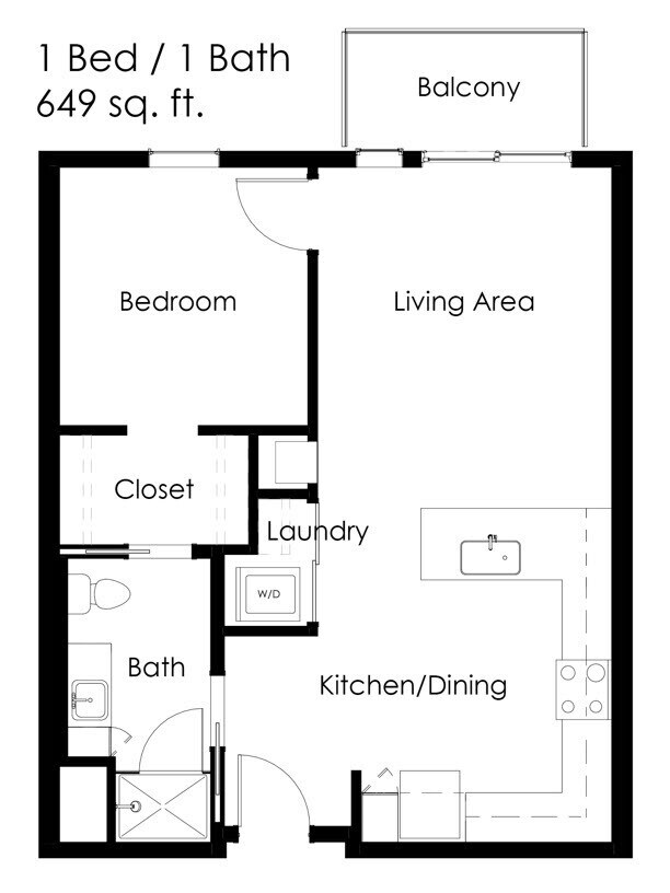 1 Bed / 1 Bath 649 sq ft 1AA ADA - Floorplan 1 1 Bed / 1 Bath 651 sq ft 1B