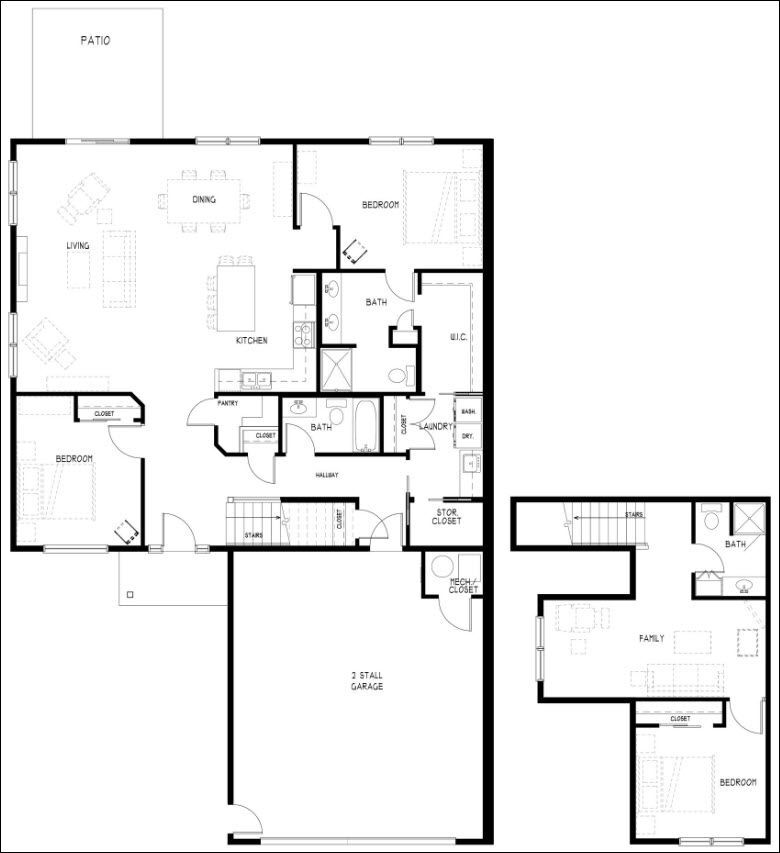 New Construction! Luxury Three Bedroom Twin Home at the Earl features spacious living on the main level with the main living area, primary bedroom suite, the second bedroom, a full bath, and laundry room. Upstairs you'll find the third bedroom and bath along with the family room. Enjoy an open floorplan in the main living areas and great storage throughout. We are sure you'll find this floor plan great for entertaining and more!
