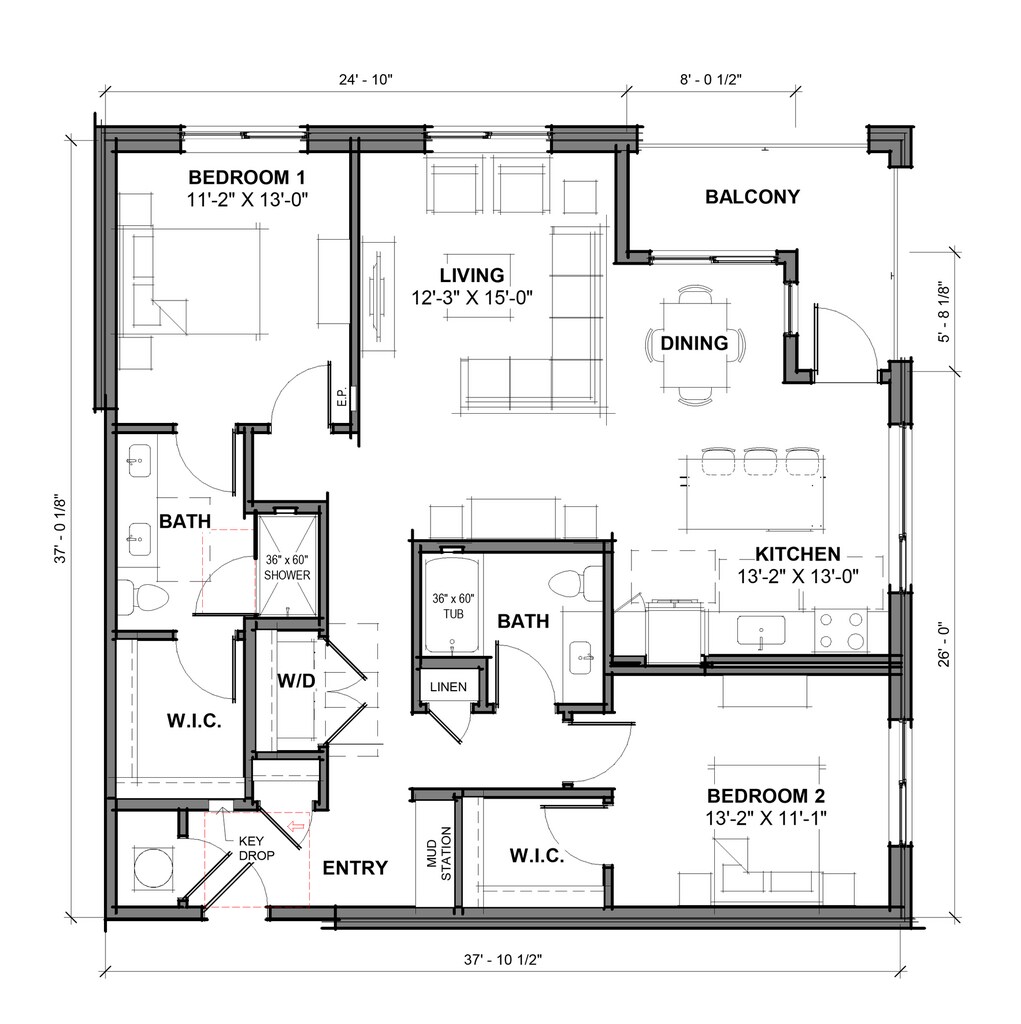 1 Bed, 1 Bath, 674-682 sq ftAvailable NowModel Gallery