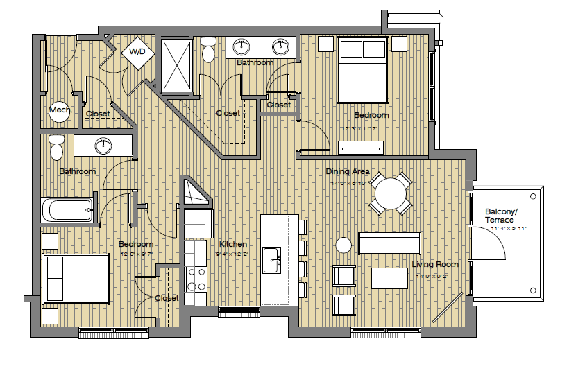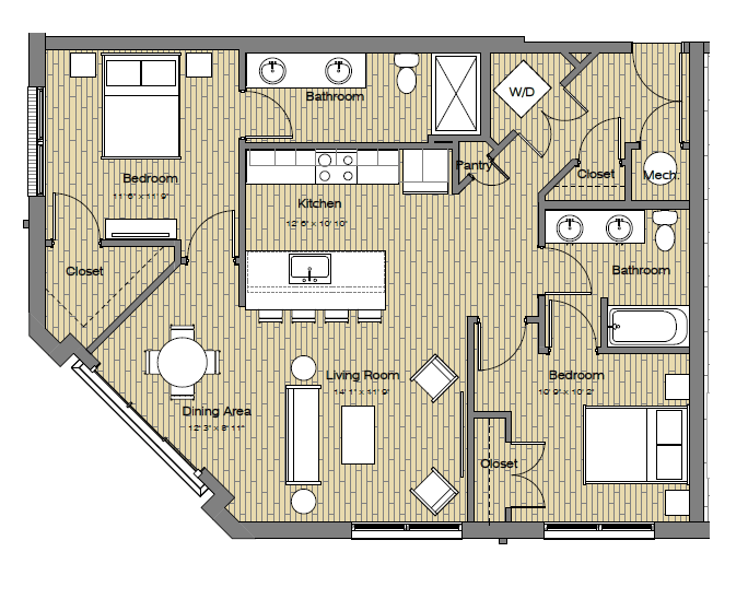 1 Bed, 1 Bath, 749 sq ftAvailable NowLargest 1 BedroomThis is the largest 1 Bedroom at this PropertyModel Gallery