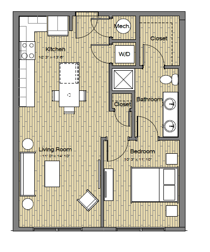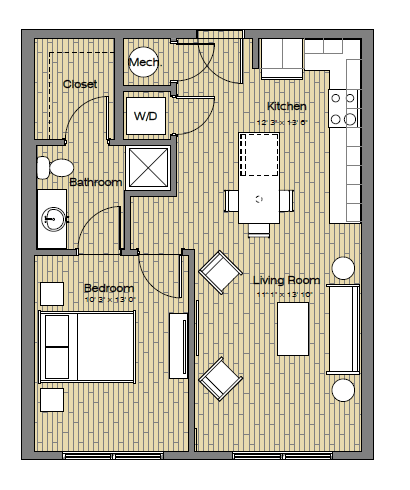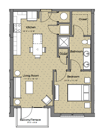 S1A Studio / One Bath - Floorplan 2 S1 Studio / One Bath