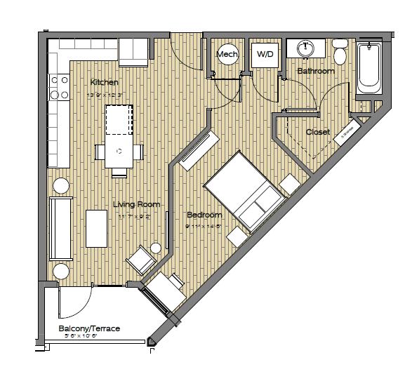 Studio, 1 Bath, 690 sq ftLargest StudioThis is the largest Studio at this PropertyModel Gallery
