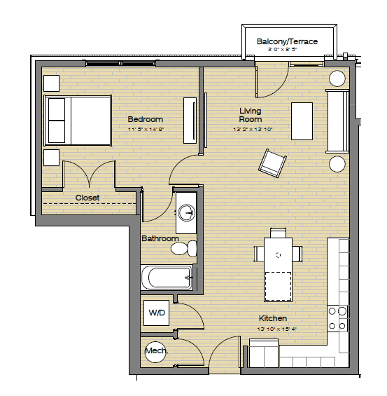 Apartment Model: A1 One Bedroom / One BathFrom $1,4501 Bedroom, 1 Bath, 642 sq ftAvailable Now![]()