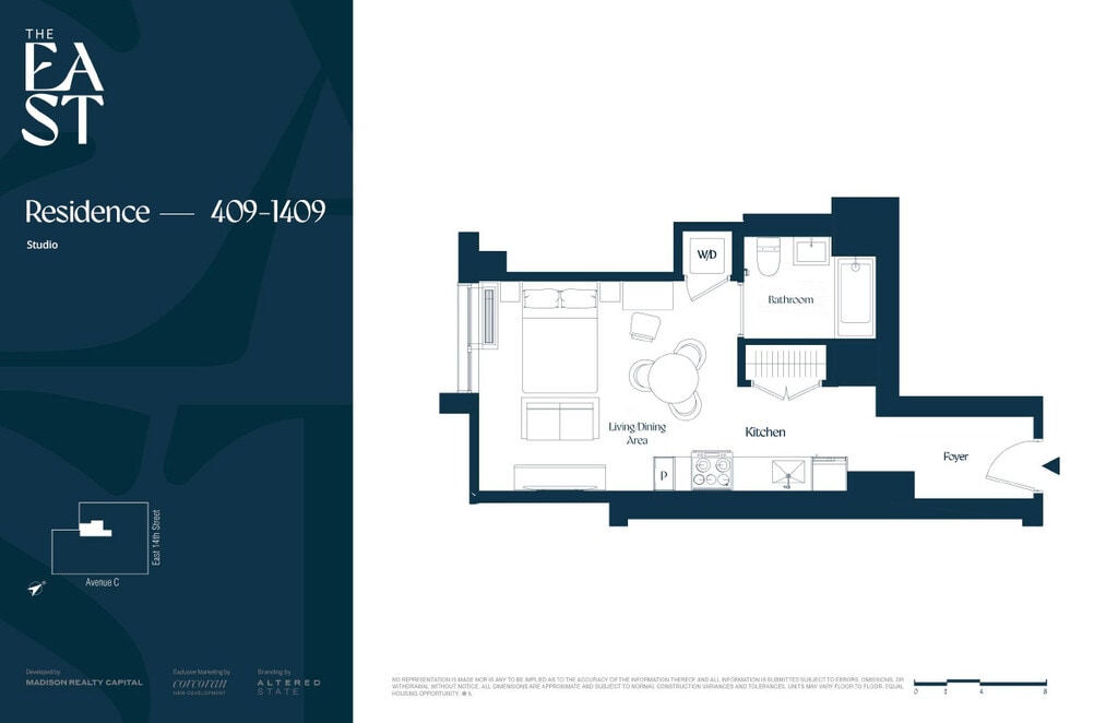 Located at 644 East 14th Street, The East offers brand-new luxury studio to two bedroom residences thoughtfully curated with premium finishes and amenities that are designed to inspire connection and comfort. Situated in the East Village—one of NYC’s most iconic neighborhoods—The East places you moments from Tompkins Square Park, the East River Greenway, and the L train at 1st Avenue. Explore eclectic dining, cultural landmarks, and creative energy—all just outside your door. From morning coffee at a local café to evenings on the rooftop watching the city glow, The East offers a lifestyle as dynamic as the neighborhood itself. Here, connection and calm coexist—creating the ultimate urban retreat. Studios to two-bedroom homes feature modern stainless-steel appliance packages, custom kitchen cabinetry with built-in lighting, and elegant porcelain countertops and backsplashes. Oversized windows flood interiors with natural light, while select homes include private terraces for a serene outdoor escape above the city. Additional features include wide-plank flooring and LED lighting throughout, creating a warm, contemporary feel. Enjoy the convenience of an in-unit washer and dryer, expansive built-out closets, and sleek paneled cabinetry for a seamless finish. Take in sweeping panoramic skyline views from the furnished rooftop deck, complete with multiple BBQ stations for unforgettable gatherings. Inside, discover a stylish resident lounge with co-working spaces and a state-of-the-art fitness center designed for strength, cardio, and mindful movement. Everyday conveniences—such as an attended lobby, bike storage, and package lockers—add to the ease of life on the Eastside. Photos reflect typical finishes. Units may vary. All information subject to change. Equal Housing Opportunity.