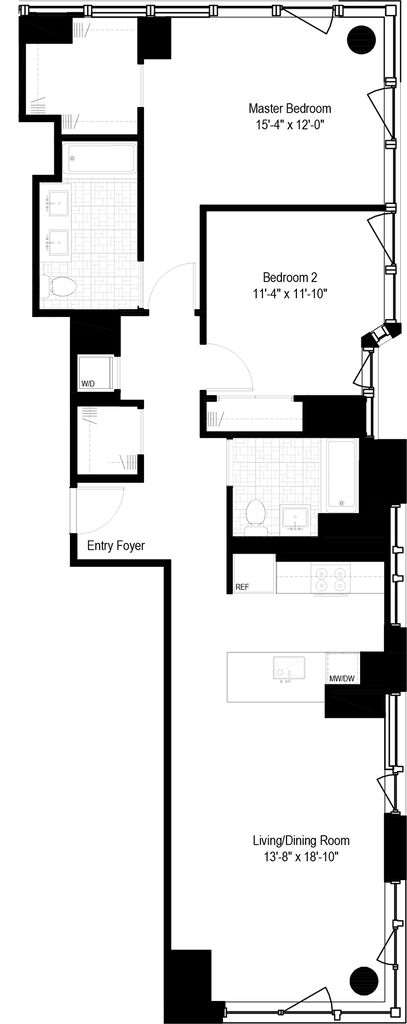 2 Bedroom / 2 Bathroom - Floorplan 11 Apartment Unit: 21FApartment Model: 2 Bedroom / 2 Bathroom2 Bedroom, 2 Bath, sq ftAvailable March 1, 2026FloorplansPhotos![]()