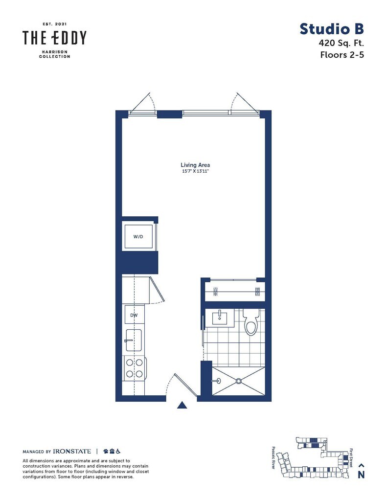 The Eddy is located in the 07029 Zip code of Harrison, NJ. This community is professionally managed by Ironstate Development Company